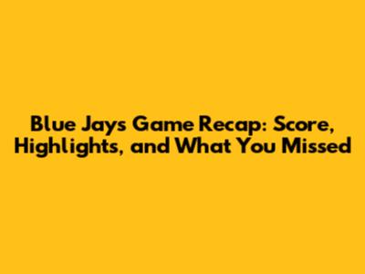 Blue Jays Game Recap: Score, Highlights, And What You Missed