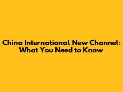 China International New Channel: What You Need To Know