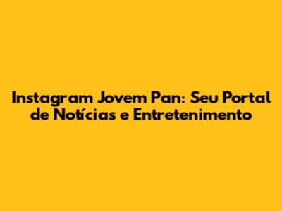 Instagram Jovem Pan: Notícias, Entretenimento e Muito Mais!