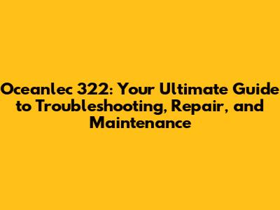 Oceanlec 322: Troubleshooting, Repair, And Maintenance Guide