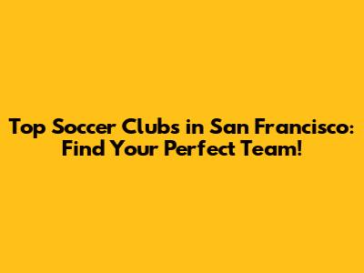 Top Soccer Clubs In San Francisco: Find Your Perfect Team!
